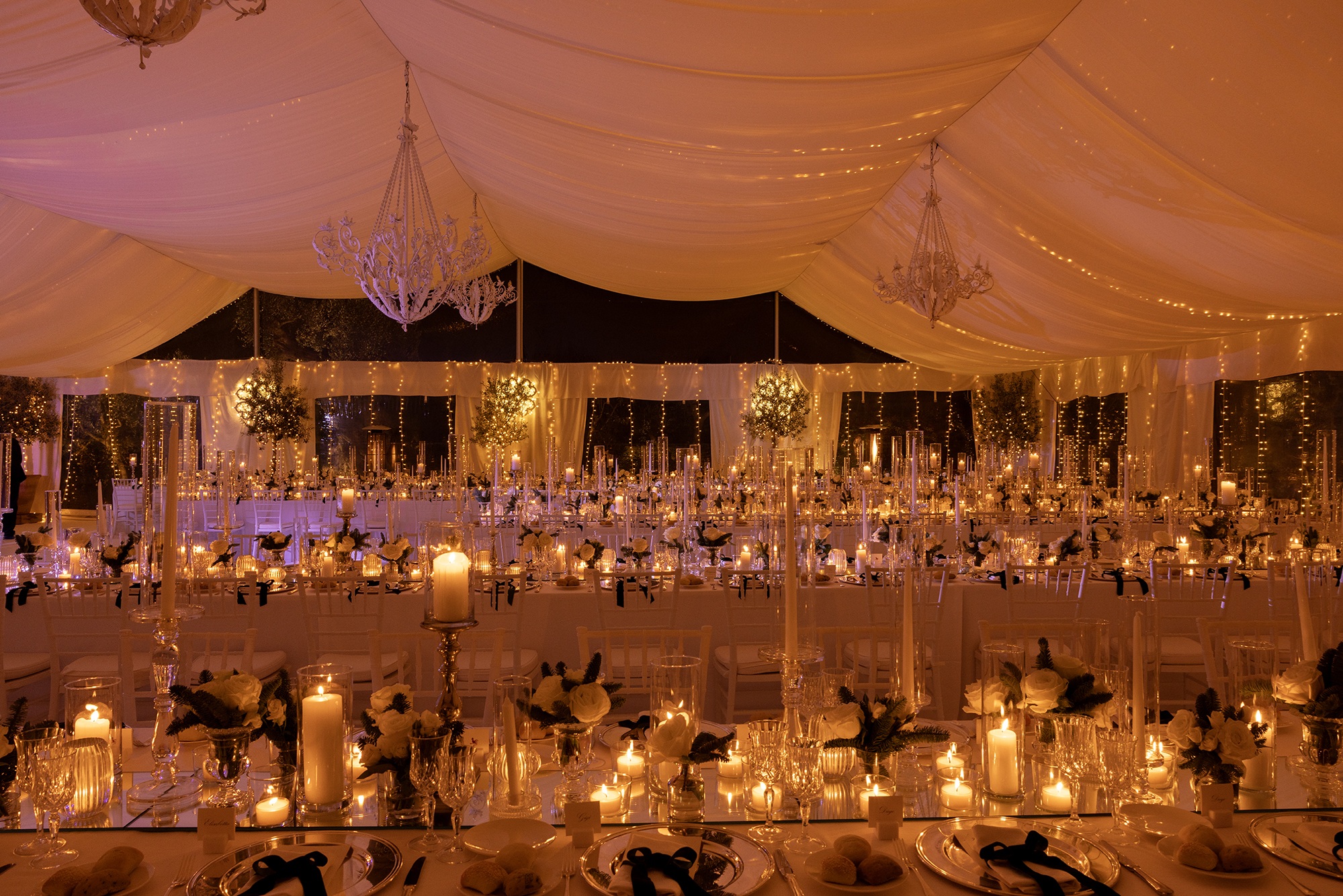 Through the spectacular Tunnel dotted with sparkles and covered with bouganvillae and roses, you reach Il Gazebo in the 1600s garden for the seated dinner, the dessert buffet and cake cutting surrounded by the walls of the garden and then disco and cocktail bar in the 'ancient natural white cave, with a large fireplace.